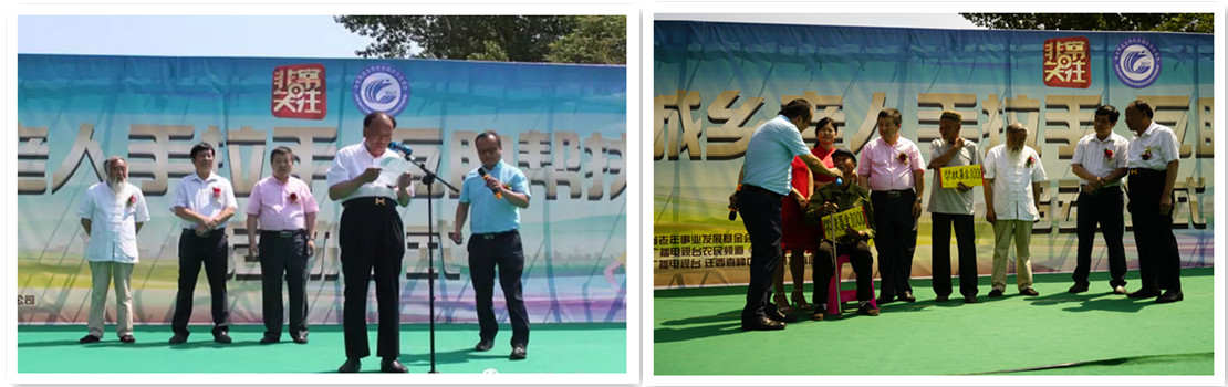 开幕仪首先进行了祭拜栗神活动,祈求今年风调雨顺,四季平安,五谷丰登,六畜兴旺,板栗实现大丰收;一曲小合唱《大刀进行曲》拉开了“城乡老人手拉手互助帮扶行动”启动仪式的帷幕;河北省老年事业发展基金会常务副理事长孙鸣改、迁西县副县长周定奎、河北省老年事业促进会副会长刘文福、河北广播电视台农民频道《非常关注》栏目制片人苏老三共同为“城乡老人手拉手互助帮扶行动”启动仪式揭幕,城乡老人现场手拉手结成对子,由帮扶代表迁西县福珍全矿业有限公司董事长刘文福现场给予两位需要帮扶的老人各1000元爱心帮扶基金。