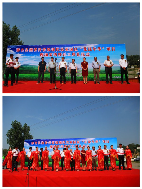 为了深入贯彻落实习近平总书记“绿水青山就是金山银山”理念的决策部署,进一步推进农业供给侧改革,加快农旅创意发展,7月5日,由北京中农富通园艺有限公司与邢台九绿农业开发有限公司共同开发建设与运营的全国首例“花漾年华”项目,在邢台县抱香谷现代农业园区隆重举行开工大典仪式。河北省现代农业园区建设促进会名誉会长崔葆林、中国农业大学农业规划科学研究所所长、北京中农富通园艺有限公司董事长张天柱教授、中国农业大学国际学院原院长孟繁锡以及邢台市农工委、邢台县相关部门领导及企业参加活动。会上,中农富通公司董事长张天柱、九绿农业公司董事长张现军发言。