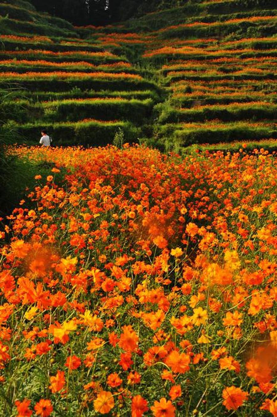 但景观种植的植物其开花周期总是十分有限,一两个月的开花周期一过,吸引力就会消失。因此多种景观植物交替接班,不断推出,能让乡村旅游的旺季持续的更久,而不是仅仅集中在那一两个月。因油菜花田而出名的婺源现在也不满足于三四月份的旺季,继油菜花海之后在江岭景区打造出二季花海——波斯菊花海,从而丰富了七、八、九月份婺源旅游的观赏内容。