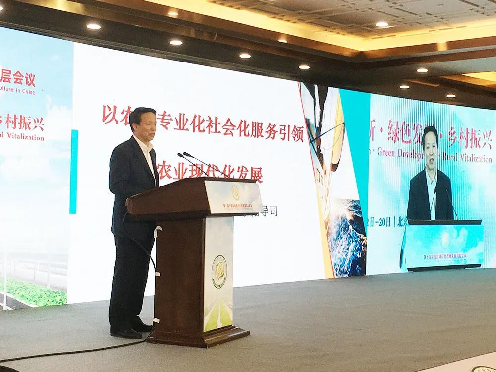 随后,法国驻华大使馆农业参赞白峰朔通过视频的方式为大会致辞,他表示,食物生产的可靠性,农业体系的可持续性以及乡村生产能力是保证食品供应链持续运营的重中之重,食品生产作为食品供应链的第一个环节尤为重要,并预祝大会圆满成功。在主旨报告环节,中国农村专业技术协会理事长、中国农业大学原校长柯炳生就“双循环背景下的农业高质量发展”为主题做了主旨报告,并表示我国全面建成小康社会胜利在望,但农业基础还不稳固,面向未来,最根本性的挑战是如何用越来越少的土地、越来越少的水资源、越来越少并越来越贵的劳动力生产出更多、更好、更安全的农产品。并通过具体的案例和实践研究成果为双循环背景下的农业高质量发展领航把脉、廓清思路,让大家深受启发。在国际农业发展交流环节共有3位国际嘉宾代表做了发言。马来西亚驻华大使馆投资处公使尤凯利Mr. MOHD ZUKEPLI EMBONG以“马来西亚农业投资贸易合作展望”为主题进行了发言。他分享了中马两国农业领域的合作情况,以及马来西亚目前的农业上游和下游产业发展重点及2021年的发展目标,并鼓励大家积极参与中马两国农业方面及其它领域的合作。法国驻华大使馆农业参赞Mr. François BLANC以“法国智慧农业与乡村振兴”为主题进行了发言,介绍了法国的农场的基本情况以及在食品行业和食品领域取得的成绩。讲述了关于在智慧农业和乡村振兴以及高质量产品生产方面的成果表现,并强调农产品质量的重要性。中德农业中心德方执行主任周裕耕博士Dr. JürgenRitter以“中德农业合作现状”为主题进行了发言。中德农业中心通过促进在中德双方共同关心的农业问题上的合作与对话,支持中国农业的可持续发展,通过农业政策对话、农业与食品经济对话,科学对话和科技交流平台,以及公众关系和网络等方面方面来加强中德两国在农业和食品领域的广泛合作。三位嘉宾发言后,主持人表示,希望今后能够不断加强中国农业与世界各国农业的交流合作,同时也希望通过大家的共同努力,在促进国际交流、国际合作等方面做出更好的成绩。国际农业发展交流部分到此圆满结束。随后进行了研究报告发布环节,中农富通持续发布行业热点书籍和研究报告,近年来已发布行业研究报告13个。在大会上,中国农业大学教授、农业规划科学研究所所长、中农富通首席专家张天柱代表课题组发布了《农业生产性服务业发展研究报告(2020)》和《国家农业高新技术产业示范区发展研究报告(2020)》两部行业报告。之后进行了2020中国县域现代农业发展优秀组织/个人推介名单公布环节,公布了品牌农业示范县(区),最具农业投资价值县(区),县域农村合作最佳示范带动组织、县域农村合作组织杰出人物、农业产业化创新发展企业等名单。下午,首先是主题报告环节,该环节由中国农业大学国家农业市场研究中心主任、韩一军教授主持。各位嘉宾通过不同领域,不同视角与大家共同探讨农业现代化发展。