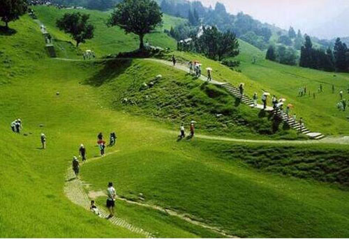 清境农场规划了六大步道,分别是“翠湖步道”-全程2300公尺,大片的茶园加上碧湖的景致,碧绿青翠就像是湖泊般,让您心旷神怡;“畜牧步道”-全程500公尺,入口处是农场畜牧中心,让您以超近的距离接触的羊群牛群;“柳杉步道”-全程750公尺,柳杉群林是寻幽静谧,享受森林浴最佳去处,享受芬多精的洗礼;“落日步道”-全程1000公尺,是观落日美景的最佳地点,不仅让您放慢节奏更让您轻松愉快;“步步高升步道”-全程1800公尺,顾名思义是拾阶而上的一条步道;“玛格丽特步道”-全程600公尺,是六条步道中人气指数最高的,遍布白色法国菊玛格丽特,十分具有欧洲风情。
