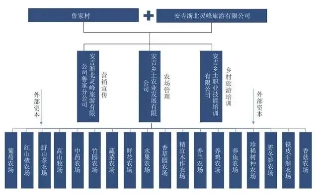 鲁家村引入安吉浙北灵峰旅游有限公司共同组建安吉鲁家乡土旅游公司,灵峰旅游占股51%,鲁家村集体占股49%,实现村集体资产的首轮价值转换,实现村民成为公司股民,鲁家乡土成为“鲁家村”的开发运营主体。
