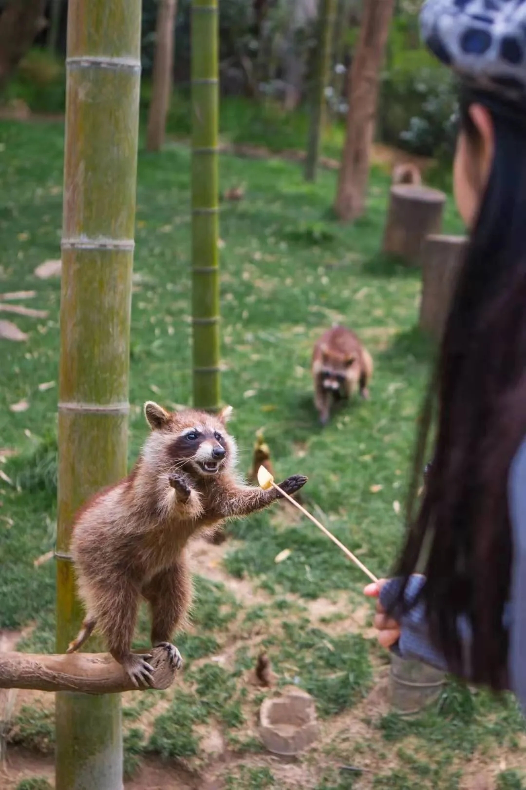 和萌萌的长颈鹿共进早餐。
