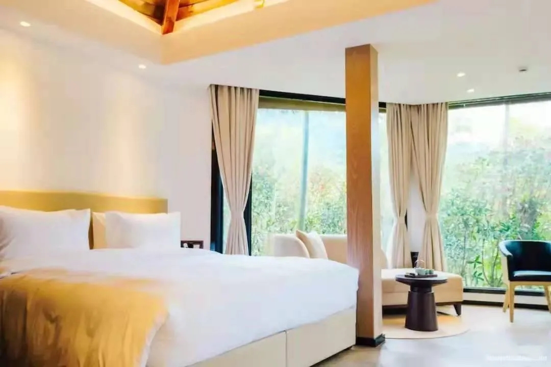 酒店由一幢幢错落有致的了林间别墅组成,共43间,掩映在树林中,瞬间有种落入人间仙境的感觉。