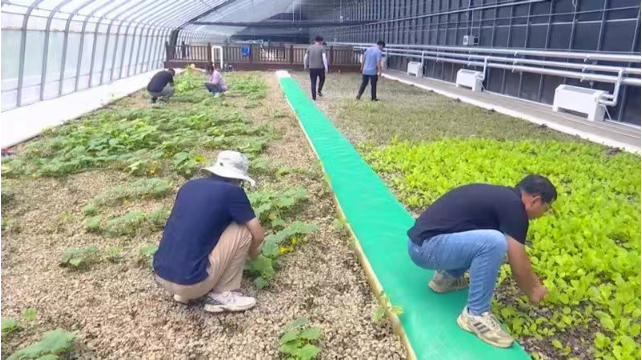 这片藏在村庄西头的70亩“宝藏地”就是九良农场,与传统农田不同,这里的温室大棚配备了现代化“鱼菜共生”系统。这套系统巧妙地构建了一个生态循环,水池中的鱼悠然游弋,鹅卵石上的菜苗则绿意盎然、生机勃勃,这正是科技与农业完美融合的生动写照。