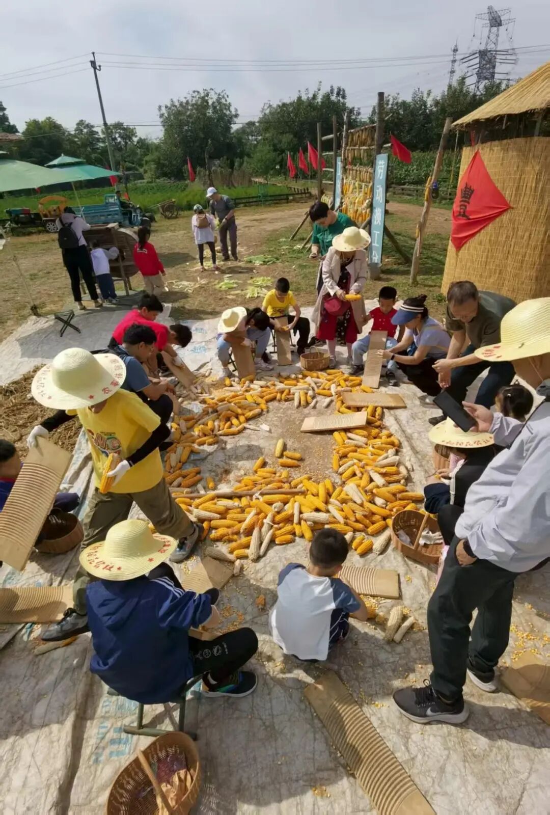 3.工分换收获:农场每天公布“工分任务”(挖红薯、收高粱、种大蒜、摘柿子、磨面粉等),游客根据分工自己选择,来农场的每个家庭先选择任务,然后热火朝天地干农活。