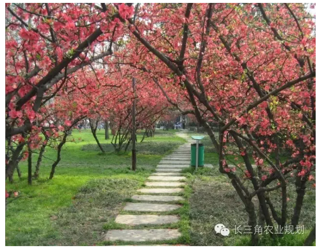 随着四季的更替而有周期性的变化,春花、夏叶、秋果、冬姿,构成具有时间序列的园林景观。休闲农业园区中可设立春、夏、秋、冬4个景区,来充分体现果树的季相景观。