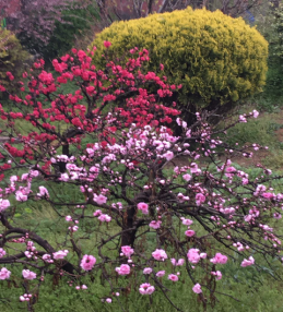 梅园及珍奇品种园占地30亩,主要栽植有:耐寒梅花、美人梅、红叶榆叶梅、杏梅、腊梅、华山松、高接龙柏、龙桑、龙枣、加拿大紫荆、日本吉野樱、美国皇家垂枝海棠、北美红宝石海棠、印第安魔力海棠、白丁香等数十个品种、2383株。