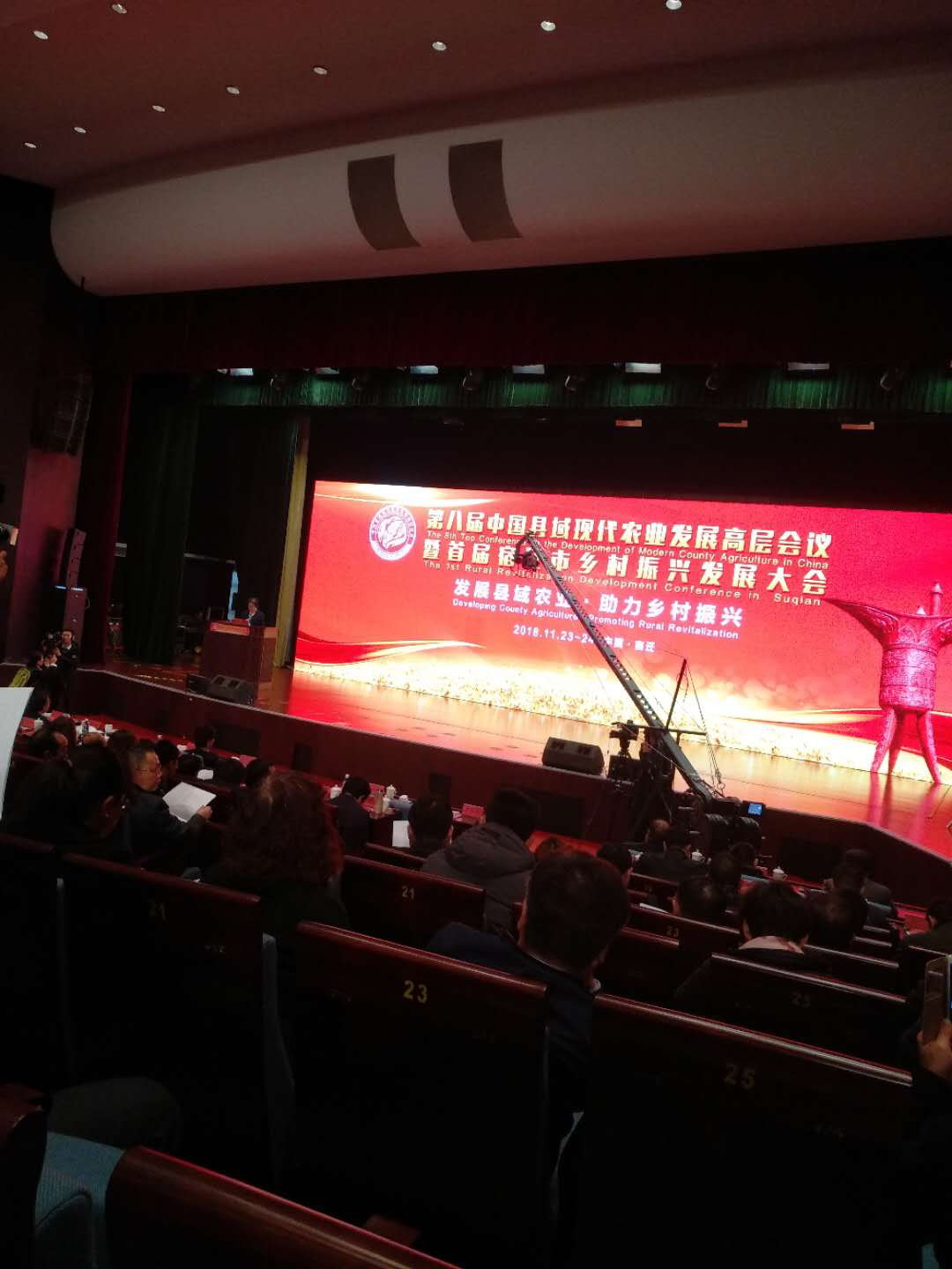 11月23日,由中国农业大学农业规划科学研究所、北京中农富通园艺有限公司、江苏富江农业科技发展有限公司等单位联合主办的以“发展县域农业•助力乡村振兴”为主题的 “第八届中国县域现代农业发展高层会议暨首届宿迁市乡村振兴发展大会(以下简称第八届县域会)在江苏宿迁隆重召开。与会嘉宾主要有农业农村部、国家发展和改革委员会等部委办局领导,全国各地省市区县主管农业领导、科研院校专家教授、驻华使馆参赞、国际嘉宾、龙头企业代表、金融机构负责人、媒体等700余人。河北省现代农业园区建设促进会由名誉会长崔葆林率队参加了本次会议。