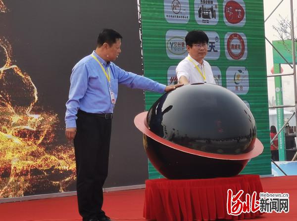 图为宁晋县委副书记刘志奇、县政协副主席申国明共同启动“宁晋县农产品全国销售平台”水晶球,标志着宁晋县农产品全国销售平台正式启动。 通讯员王刘迪摄
