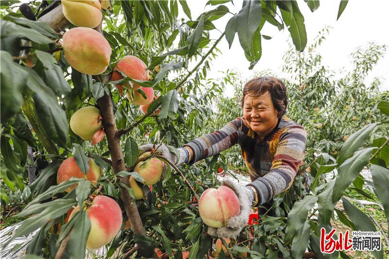 2020年10月11日,河北省遵化市兴旺寨乡朝阳沟村农民在山坡果园采摘秋桃。通讯员刘满仓摄影报道