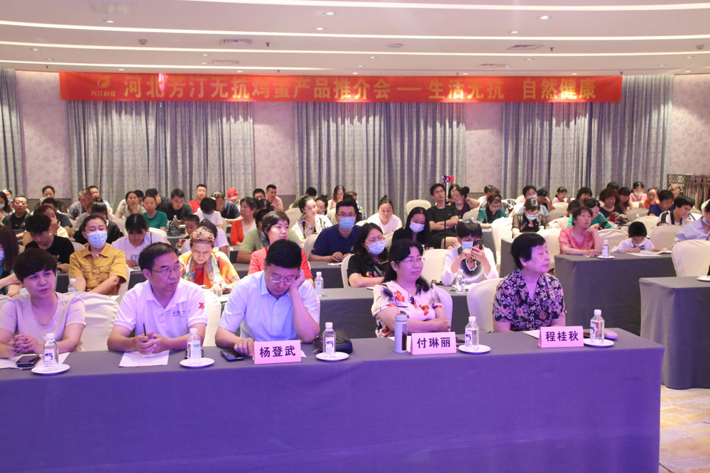7月25日,河北省现代农业园区建设促进会副会长单位河北芳汀农业科技有限公司,在石家庄美丽华大酒店成功召开了“芳汀”品牌鸡蛋推介会议。参会的有石家庄一百多位社区零售业人士,到会的相关单位领导和专家有:河北省优质地方鸡试验站站长刘文科,河北省现代农业产业蛋肉鸡体系产品加工与品牌岗位专家刘聚祥,蛋肉鸡体系产业经济岗位专家姜华,石家庄区域站团队成员吕彦英,冀南试验站站长马金波等。河北省现代农业园区建设促进会副会长、河北芳汀农业科技有限公司董事长李小芳,名誉会长程桂秋、副秘书长付琳丽参加了本次会议。