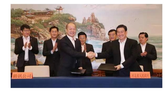 腾讯科技讯 10月16日,腾讯公司与河北省政府签署了“互联网+”战略合作框架协议。协议显示,双方将立足河北经济社会转型升级、绿色崛起的发展需求,在互联网领域深入合作。河北省省委书记赵克志,省委副书记、省长张庆伟,省委常委、常务副省长杨崇勇,腾讯公司董事会主席兼CEO马化腾、公司高级副总裁郭凯天、公司副总裁邱跃鹏等出席了签约仪式。根据协议,双方将以“互联网+”解决方案为具体结合点,共同推动互联网与河北经济社会多领域的深度融合和创新发展,优化公共服务模式和城市管理方式。合作重点是借助腾讯的“城市服务”、众创空间以及腾讯云,在政务、民生、智慧环保、智慧城市以及创业生态方面搭建平台,更好利用互联网+的连接力,服务于河北省经济社会发展。