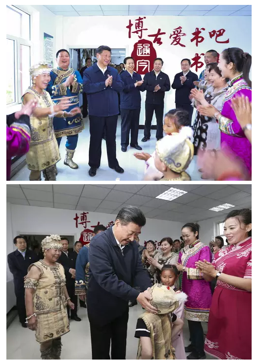 24日下午,习近平总书记来到黑龙江同江市八岔村,看望赫哲族群众。赫哲族是我国人口较少民族之一,全国有5300多人。在村文化活动中心,习近平饶有兴趣地参观了赫哲族民俗展。一些村民身着民族服装,正在学习赫哲族特有的伊玛堪说唱艺术。大家簇拥到总书记身边,唱了一曲又一曲。习近平边听边拍手打起节拍。一位5岁的小朋友用稚嫩童声为总书记唱了一首赫哲族歌谣。