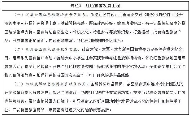改善旅游通达条件。推进重要交通干线连接景区的道路建设,加强城市与景区之间交通设施建设和交通组织,实现从机场、车站、客运码头到主要景区交通无缝衔接。支持大型旅游景区、旅游度假区和红色旅游区等建设连通高速公路、国省道干线的公路支线。力争到“十三五”期末,基本实现4A级以上景区均有一条高等级公路连接。(交通运输部、国家旅游局)